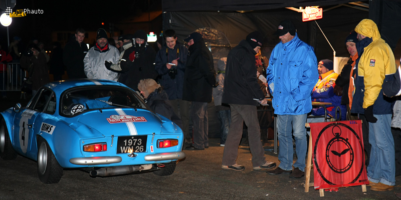 Contrôle de passage au CH de Beaune pour l'Alpine-Renault A110 d'Erik Comas et Isabelle De Sadeleer.